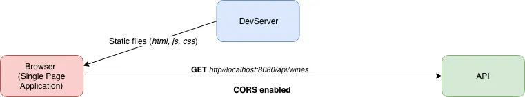 Quindi, una richiesta HTTP dall’applicazione frontend verso il server delle API è una chiamata tra due domini differente. Infatti si parla di Cross-Origin Resource Sharing (CORS) quando una applicazione effettua una richiesta HTTP verso un server su un differente dominio o su una porta differente.