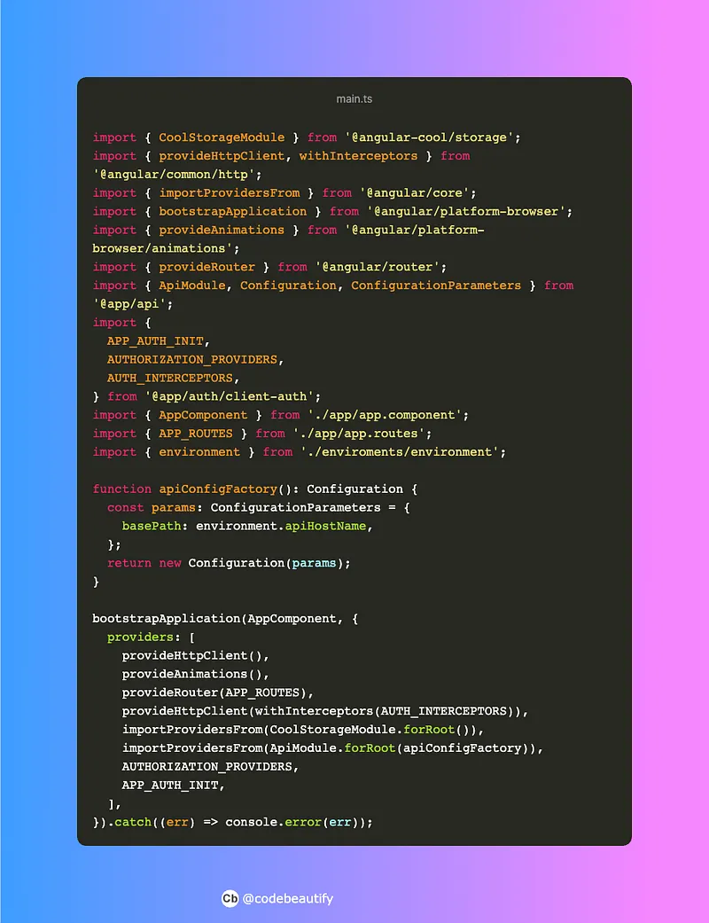 The adoption of Standalone Components brings a new way to bootstrap an Angular application. This example is taken from a real project I am working on.